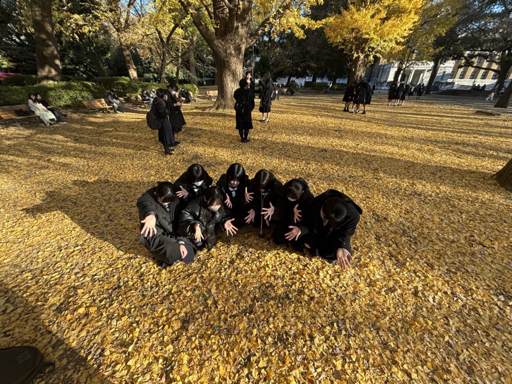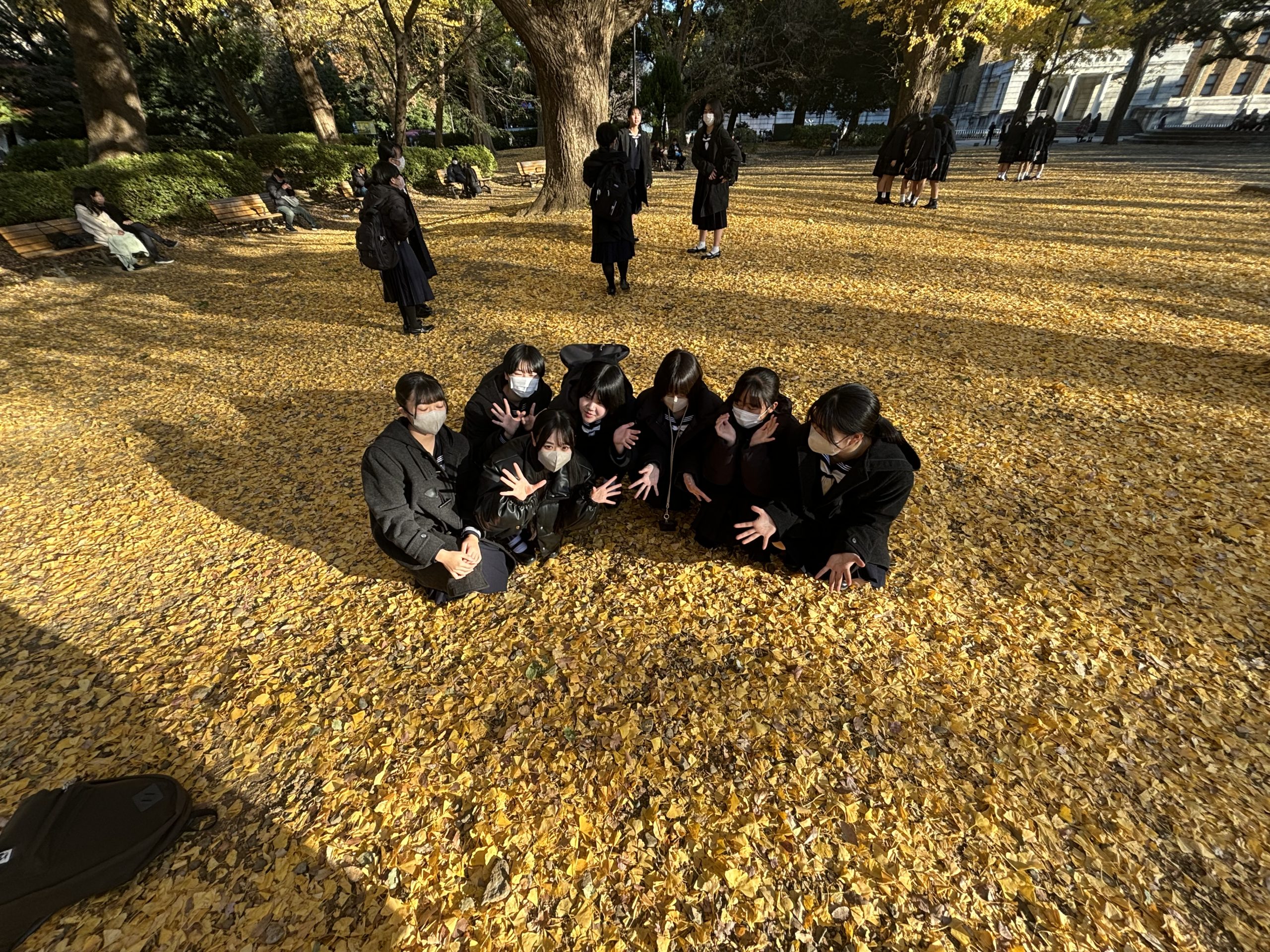 公園ではイチョウの木がとてもきれいに色づいていて、秋を感じることができました。
